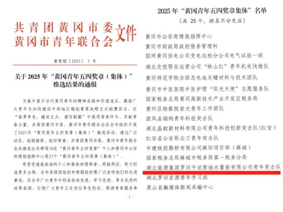平蓄公司青年突擊隊榮獲2025年黃岡市“青年五四獎章(集體)”
