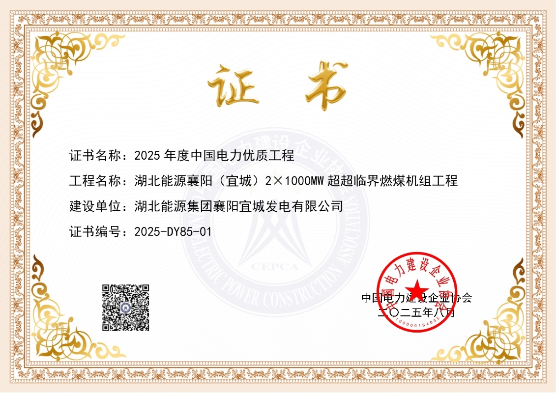 襄陽(yáng)宜城發(fā)電公司獲評(píng)2025年度中國(guó)電力優(yōu)質(zhì)工程獎(jiǎng)